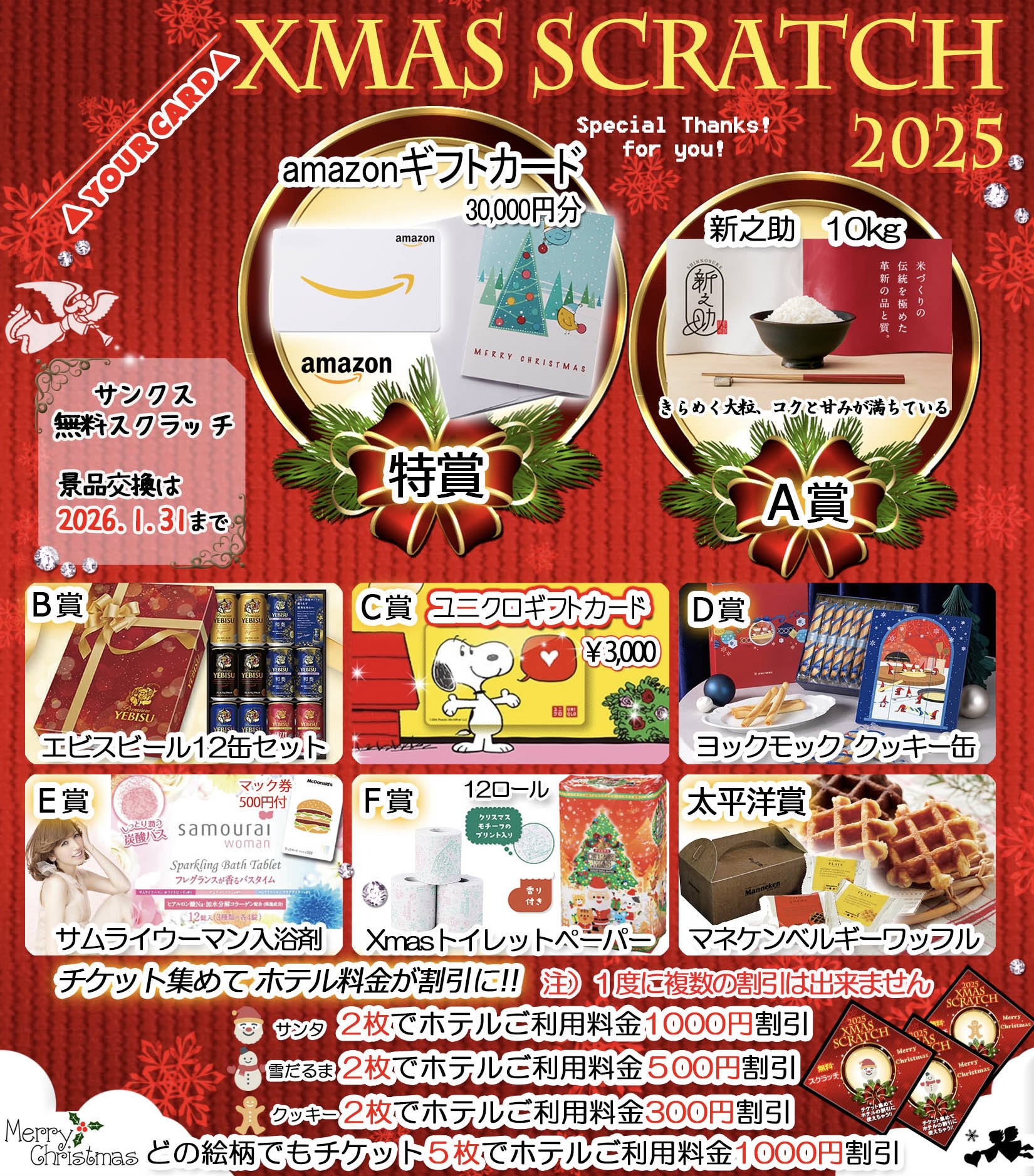 ホテル太平洋ではクリスマスイベントとして、スクラッチを配布しております♪